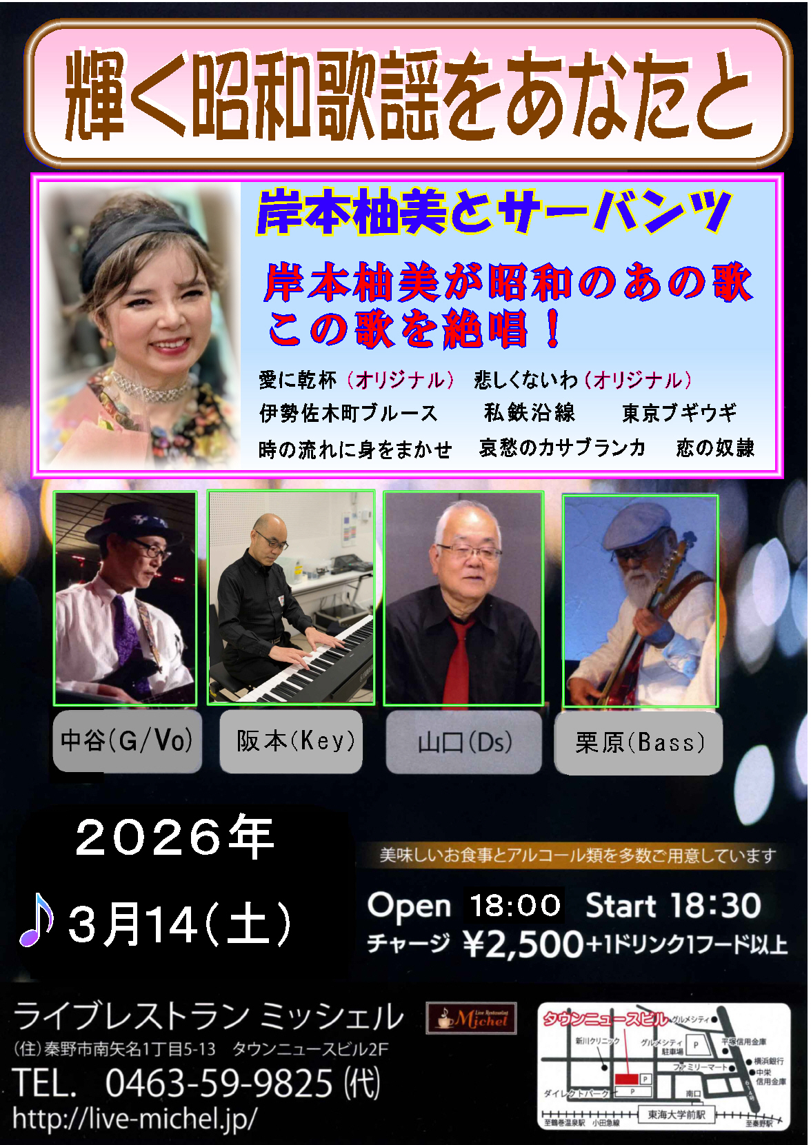 岸本柚美のオリジナル曲を含め昭和の名曲を絶唱します。